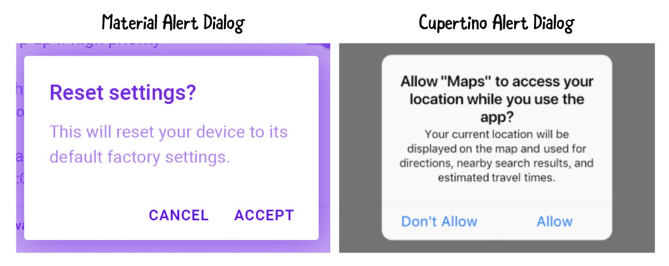 Sementara iOS menggunakan Cupertino yang bisa diimport dengan: