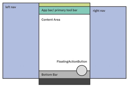 • AppBar • BottomSheet • BottomNavigationBar • Drawer • FloatingActionButton • SnackBar