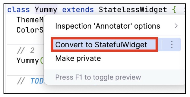 build(). - Widget Yummy dimulai dengan sebuah