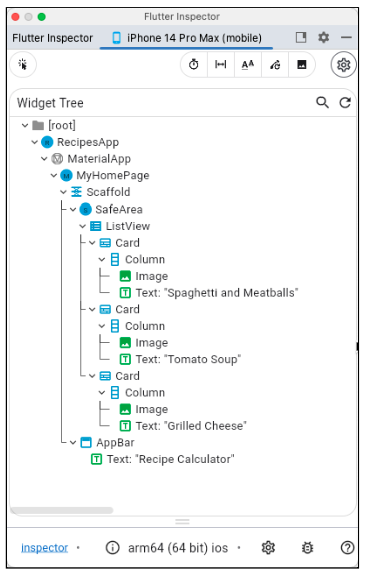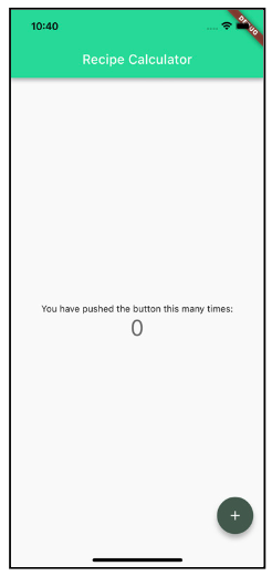 AppBarmenerima propertititledengan menggunakan widgetTextyang nilainya diberi darihome: MyHomePage(title: 'Recipe Calculator')pada langkah sebelumnya. -