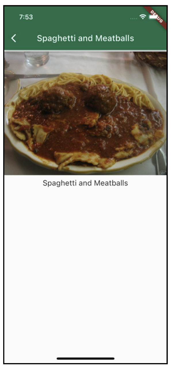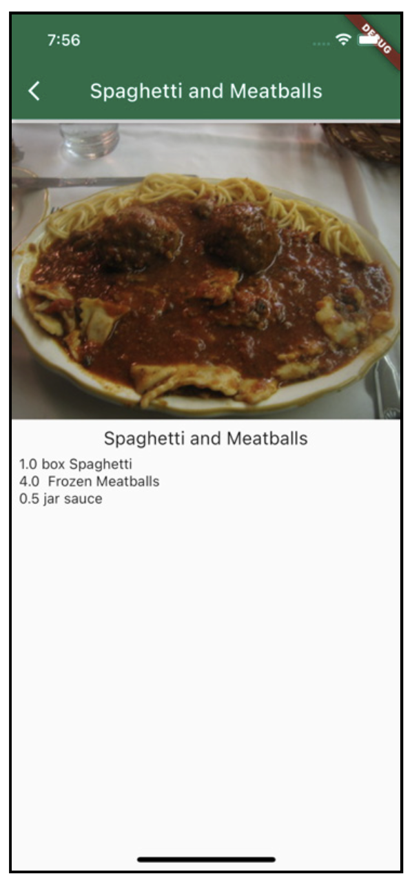 Kerja bagus, layar sekarang menampilkan nama resep dan daftar ingredients. Selanjutnya, kamu akan menambahkan sebuah fitur untuk membuatnya menjadi interaktif.