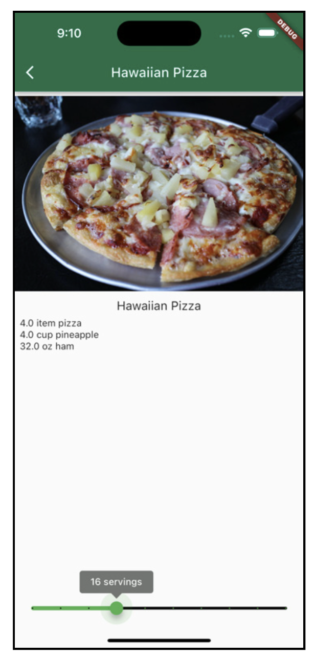 Setelah hot reload, kamu akan melihat jumlah porsi resep ini akan berubah setiap mengubah slider.