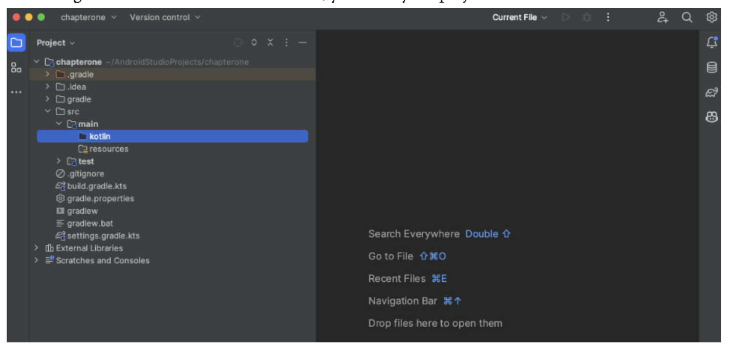 src/main/kotlin, tempat semua file Kotlin akan kita simpan. -