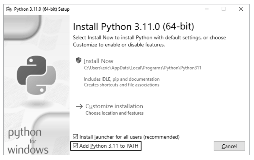 Jika Python belum terpasang di sistem kamu, atau jika versi yang terpasang lebih lama dari Python 3.9, kamu perlu mengunduh installer Python untuk Windows. Kunjungi https://python.org dan arahkan kursor ke tautan Downloads. Kamu akan melihat sebuah tombol untuk mengunduh versi Python terbaru. Klik tombol tersebut, dan proses pengunduhan installer yang sesuai dengan sistem kamu akan dimulai secara otomatis. Setelah file selesai diunduh, jalankan installer tersebut. Pastikan kamu mencentang opsi Add Python to PATH, karena ini akan memudahkan proses konfigurasi sistem kamu. Gambar di bawah menunjukkan opsi ini dalam keadaan terpilih.