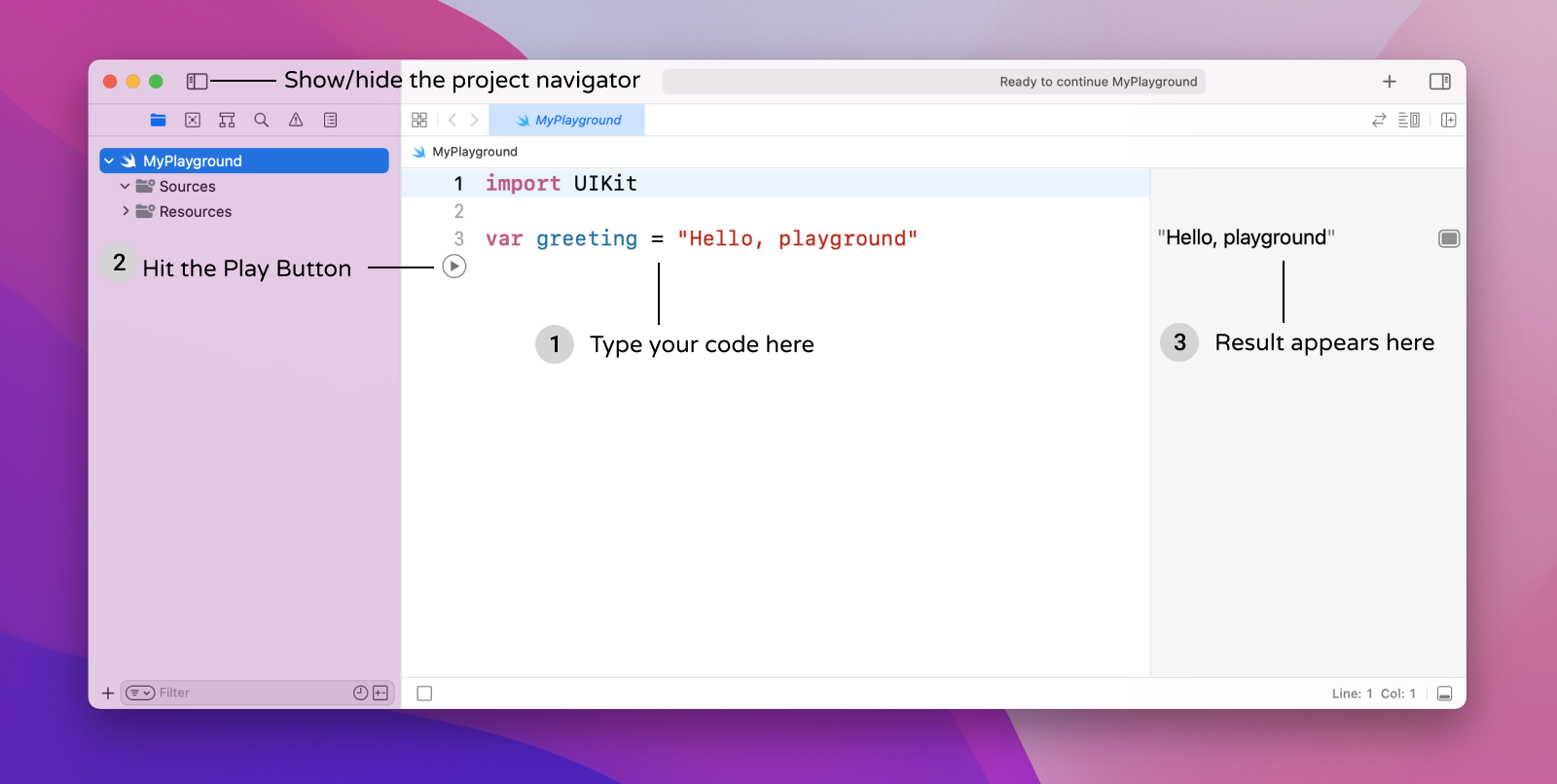 Penulis tidak ingin membuat kamu bosan dengan hanya menampilkan potongan kode. Tidak ada cara yang lebih baik untuk mengeksplorasi dunia pemrograman selain dengan langsung menulis kode. Xcode memiliki fitur bawaan bernama Playgrounds. Ini adalah lingkungan pengembangan interaktif yang memungkinkan developer bereksperimen dengan pemrograman Swift dan melihat hasil dari kode yang ditulis secara real-time. Sebentar lagi kamu akan memahami maksud penulis dan bagaimana Swift Playgrounds bekerja.